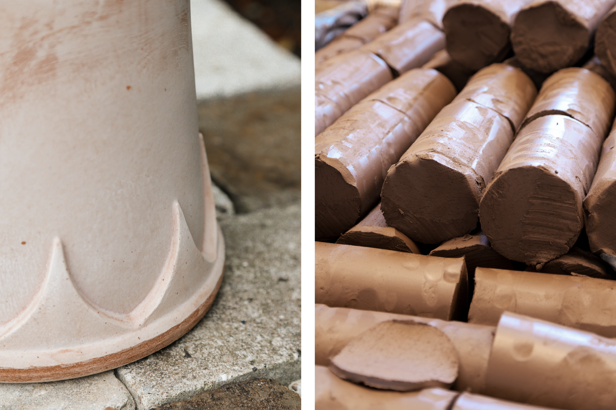 千年以來,金色小麥與橄欖樹下的肥沃土壤,是義大利古老赤陶工藝的根基。工坊內,世代傳承工藝的匠人們各司其職。製作陶盆的複雜過程,需熟練經驗與靈活雙手,依據不同器型與尺寸,選擇全手工拉坯或石膏壓模的專業技法。細心修整外觀後,整齊羅列在棚架上,等待風乾靜置,高溫漫燒成堅固耐用的美麗陶盆。底部托盤經特殊處理,同時具備防水與防黴功能。若有燒製失敗的破損陶片,蒐集並與再次與水、黏土融合,確保每一分資源都被善待,秉持尊重與熱愛自然的理念。